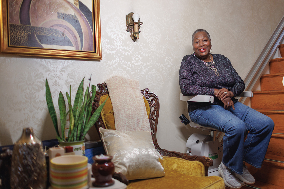 Today, Caroline, 72, doesn’t have to do that. In October, PHDC installed a stair glide to carry her over the steps. “I wish I had this years ago,” she says. “I use it all day, every day.”