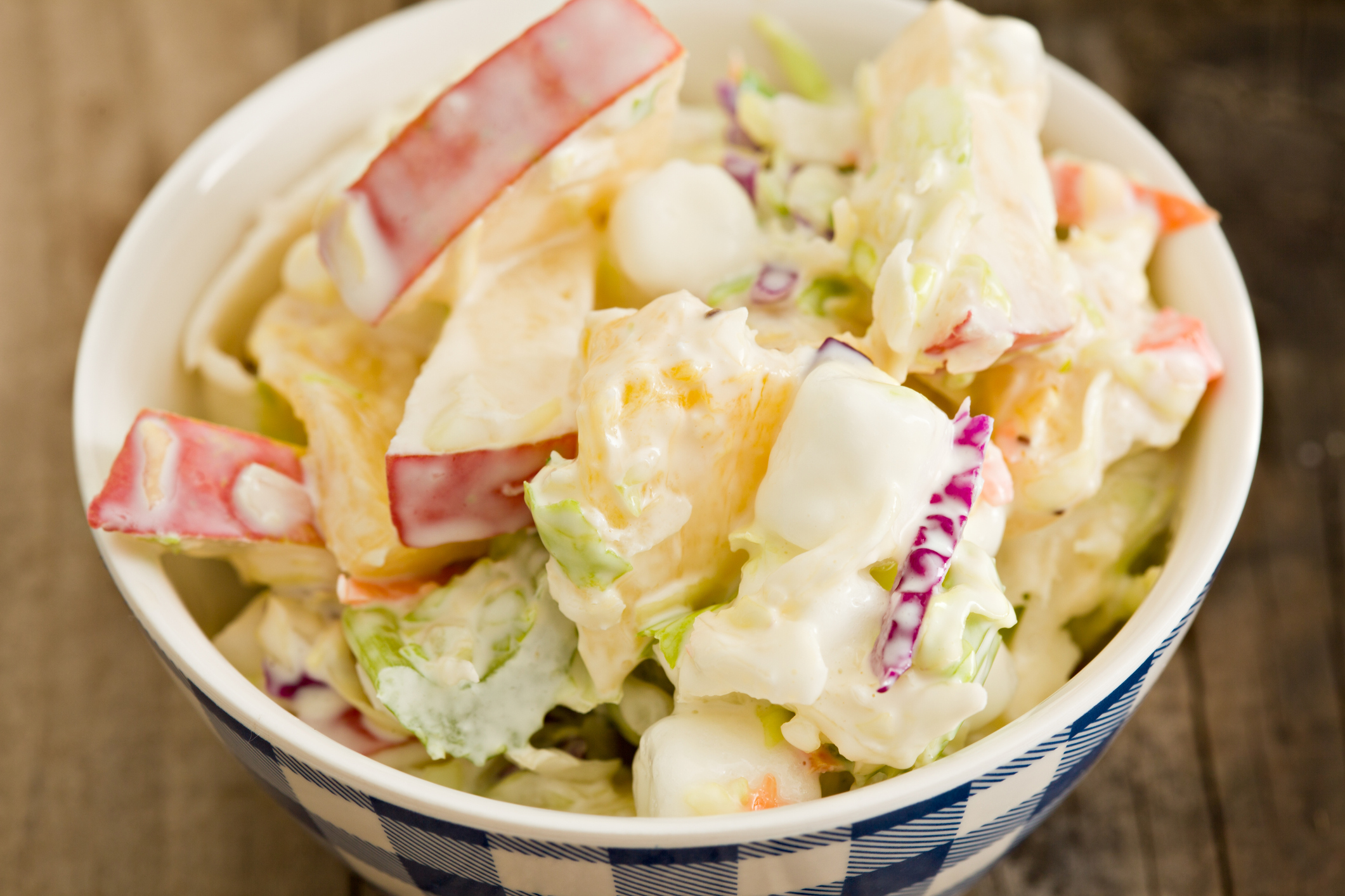 - Tip: This tasty chilled salad is a cross between Waldorf salad and coleslaw.