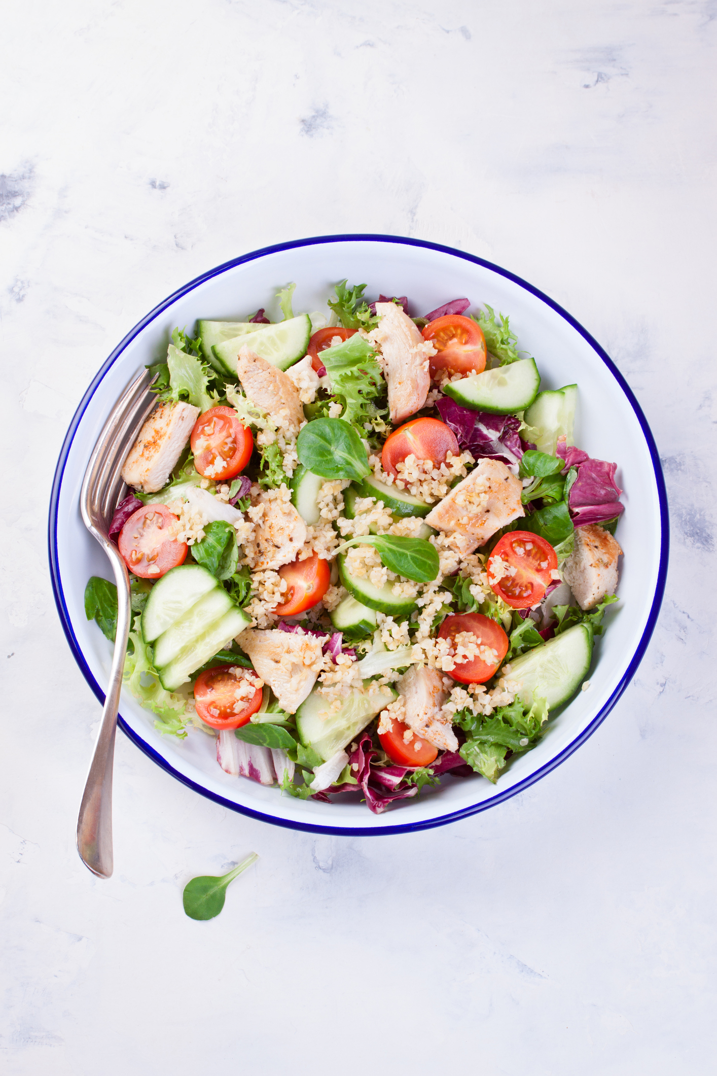 - Combine couscous, chicken, and next 6 ingredients in a large bowl. Set aside.
